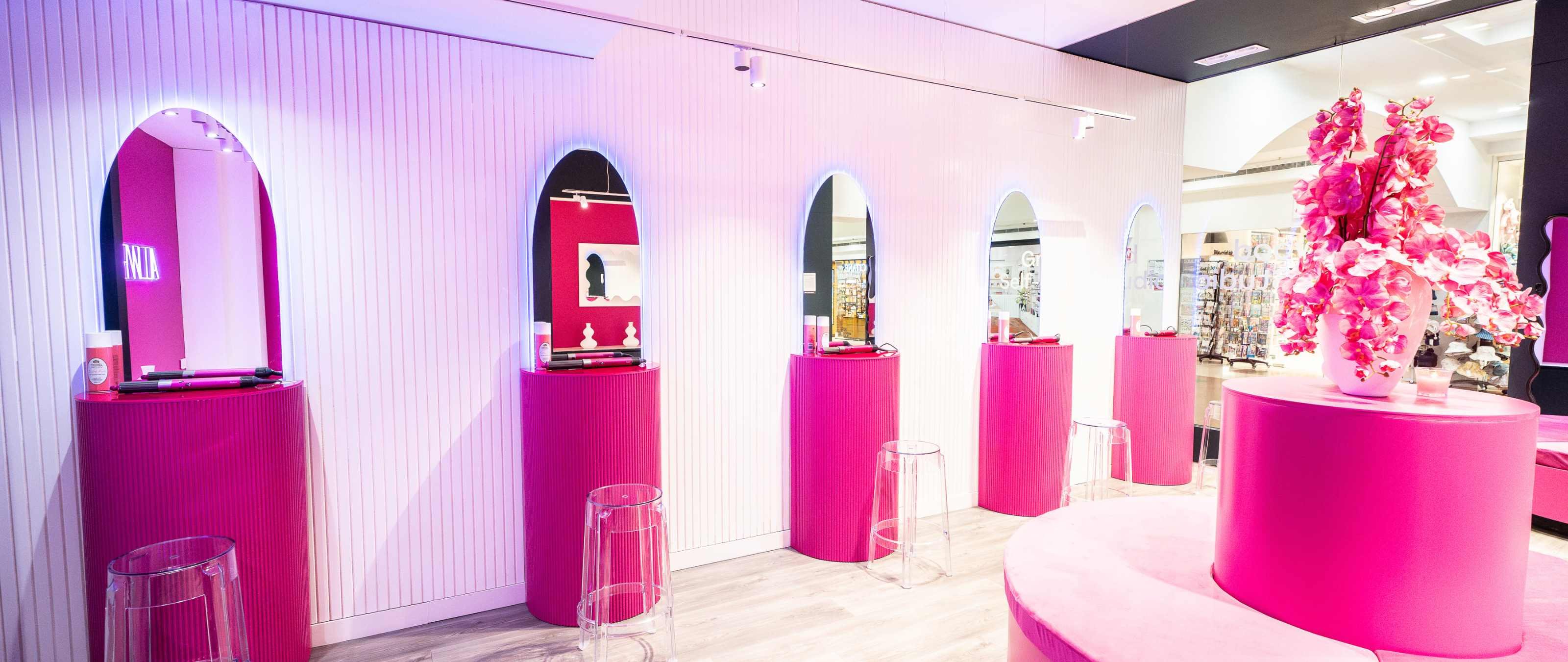 Step into a world of chic sophistication as you enter The Pink Room. Adorned with stylish pink accents, this space is your personal haven for experimentation and self-expression. With five fully-equipped stations boasting state-of-the-art Dyson airwraps and a plethora of attachments, you'll discover boundless styling possibilities at your fingertips. From effortless curls to sleek waves, achieving your dream hairstyle has never been easier.